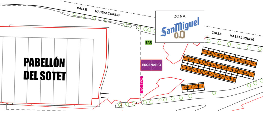 - A partir del día 25 de septiembre se cerrarán las entradas al recinto mediante vallas, negando el acceso a todo tipo de vehículos para favorecer el montaje de las peñas del día siguiente. Peña Fragatina iniciará las diligencias que estime oportunas si hubiera algún problema.